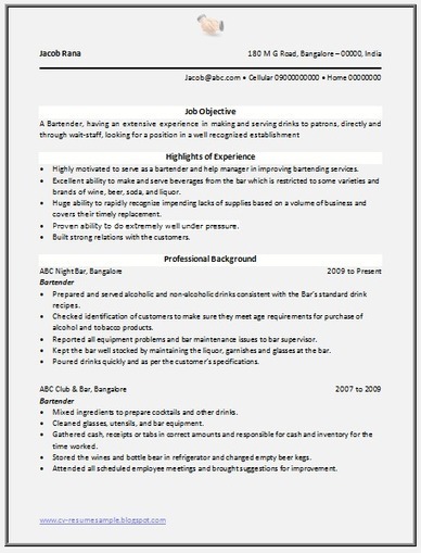Image Name: Over 10000 CV and Resume Samples with Free Download: Bartender Resume ...